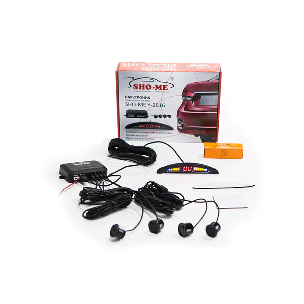 При обнаружении препятствий система подает звуковой сигнал. На светодиодном дисплее отображается шкала, позволяющая оценить скорость сближения, направление, с которого зафиксировано препятствие, и информация с точным расстоянием до опасного объекта. В парковочном радаре Sho-Me Y2616N04 имеется функция самодиагностики датчиков.